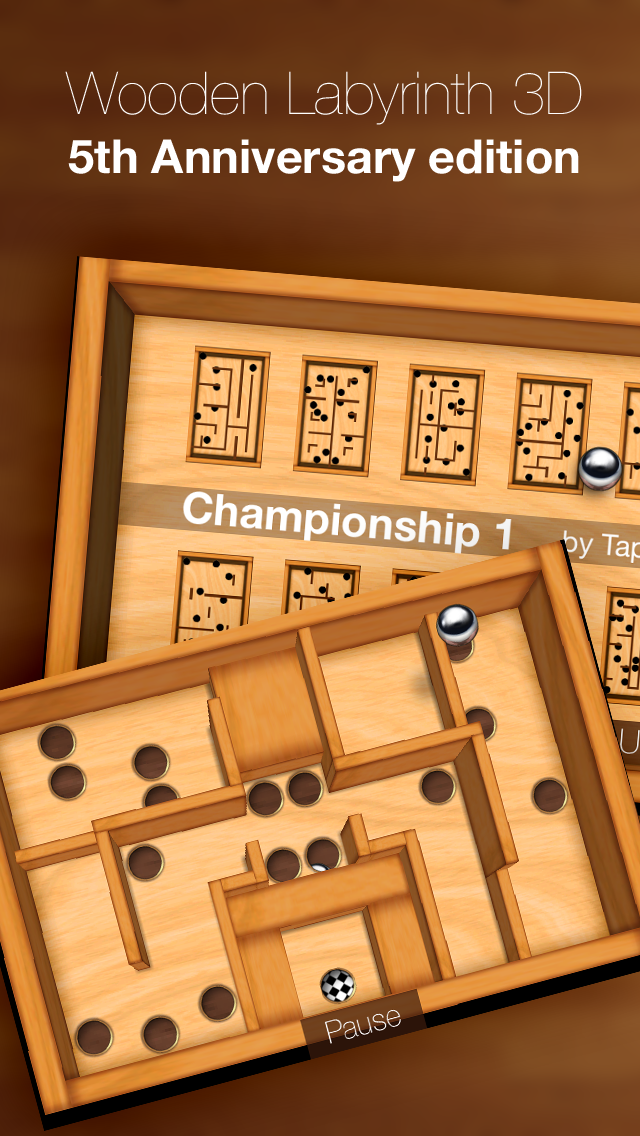Wooden Labyrinth 3D is the premium "marble in a maze" experience on the iOS. The goal of the game is simple - guide the metal ball to the end by tilting your device. However, WL3D mixes it up with some challenging obstacles - holes and walls - you must maneuver around or even jump over. Now with unlockable marble types, you can take on the levels with a stylish golden marble, or even a gliding ice cube! The addition of Game Center achievements and leaderboards allows your to test your skill globally!